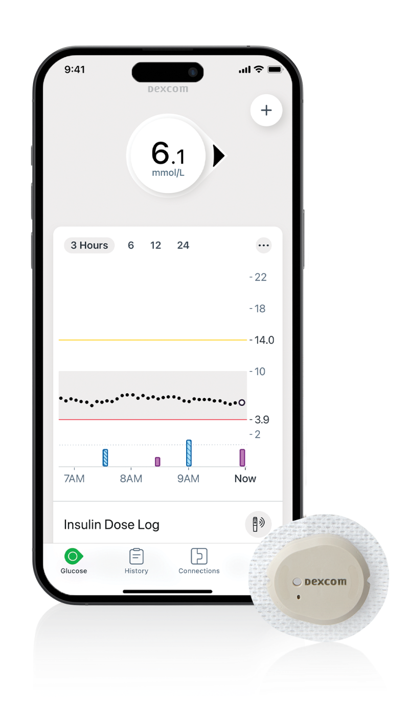 Du kan se dina insulin- och glukosdata direkt i din Dexcom G7-app² i en enda överblick.